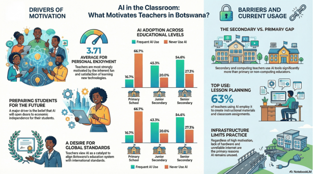 To explore the findings in more depth, and to read more about what they mean for teacher motivation and AI education in Botswana, you can read the full paper here.