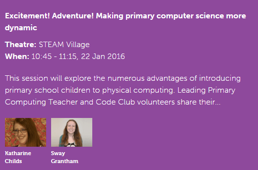 January 2016 – Keynote talk “Physical Computing in Primary Schools” (with Sway Grantham) at BETT